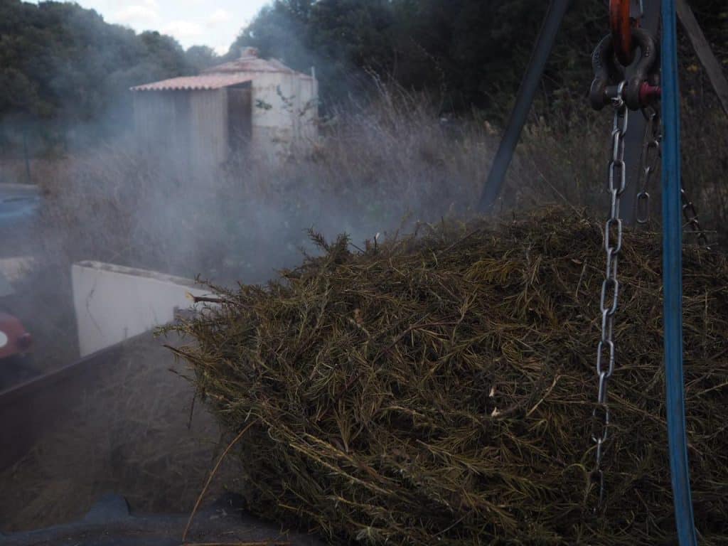 Les récoltes ont été suivies de la distillation, réalisée cette année par Pierre, sous un soleil éclatant… mais dans un froid glacial.